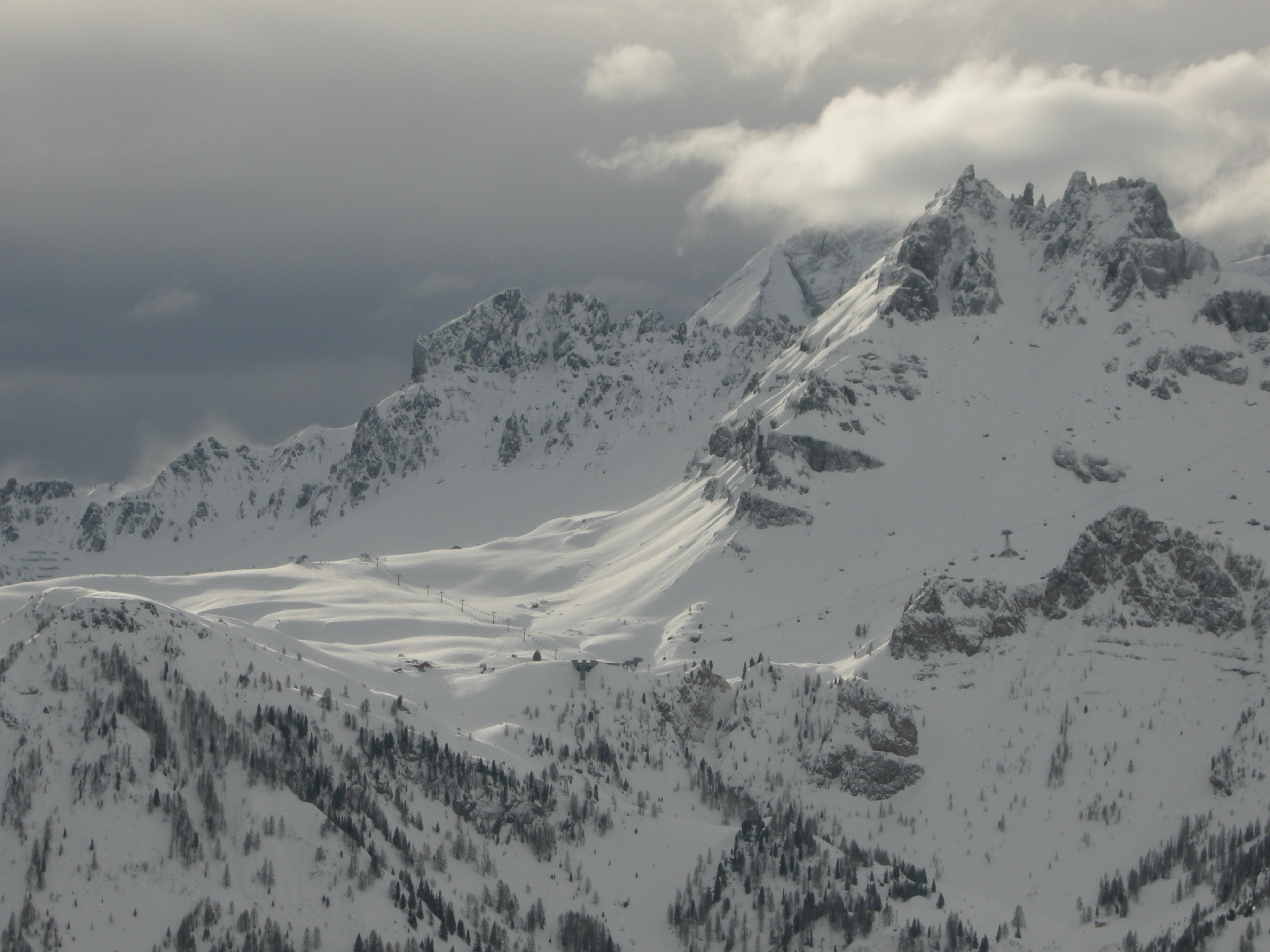 giochi di luci e ombre su Porta Vescovo verso Passo Padon dalla pista Boè