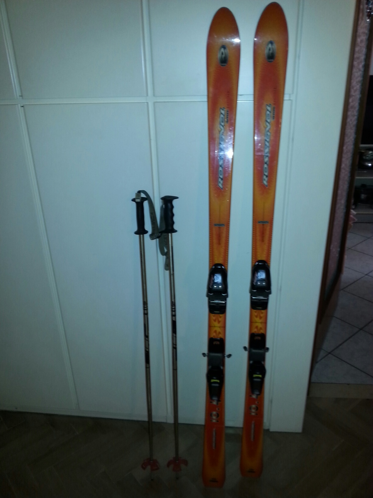 Vendesi sci carving marca Rossignol modello Toon 10.4 altezza cm. 170 con attacchi marca Marker modello M31 e bastoncini marca Komperdell.