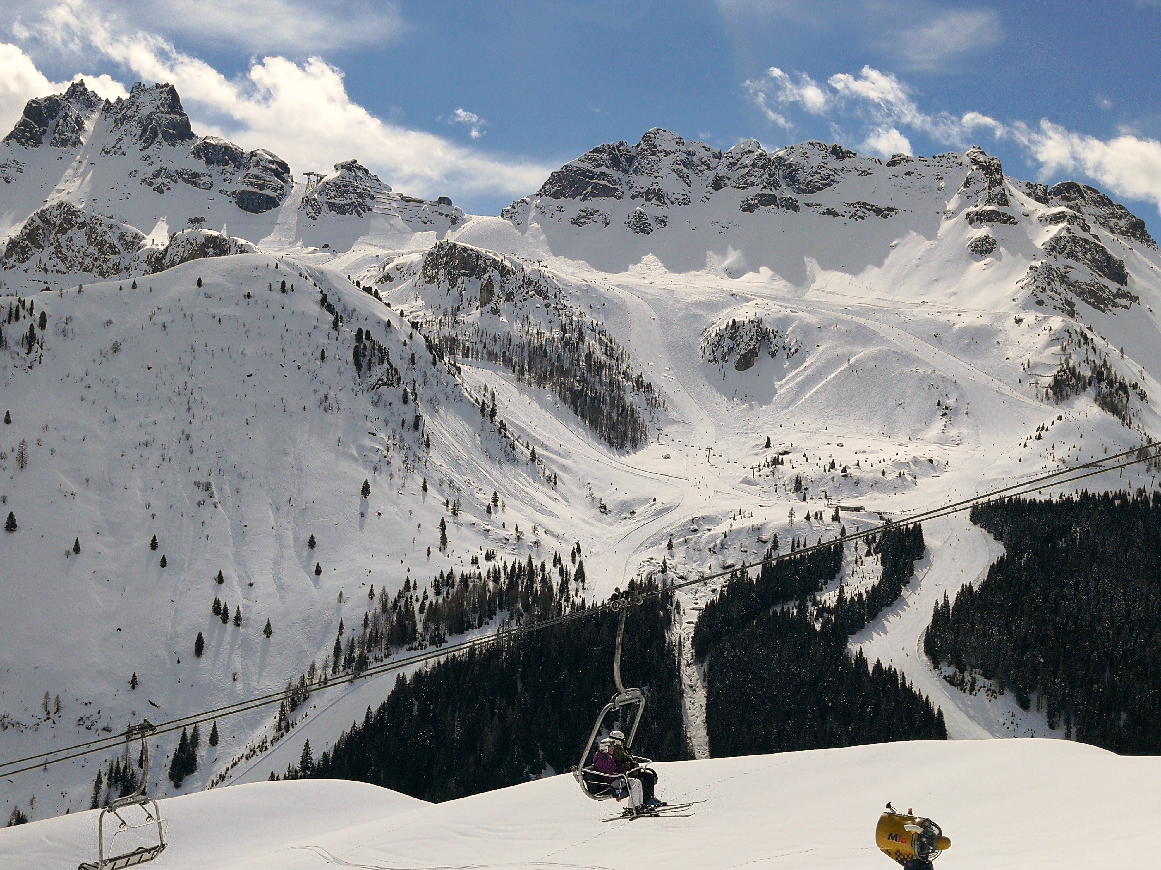 Paesaggi molto belli ma troppa gente sulle piste con formazione di mucchi di neve pericolosi e,talvolta,perfino lunghe code agli impianti.