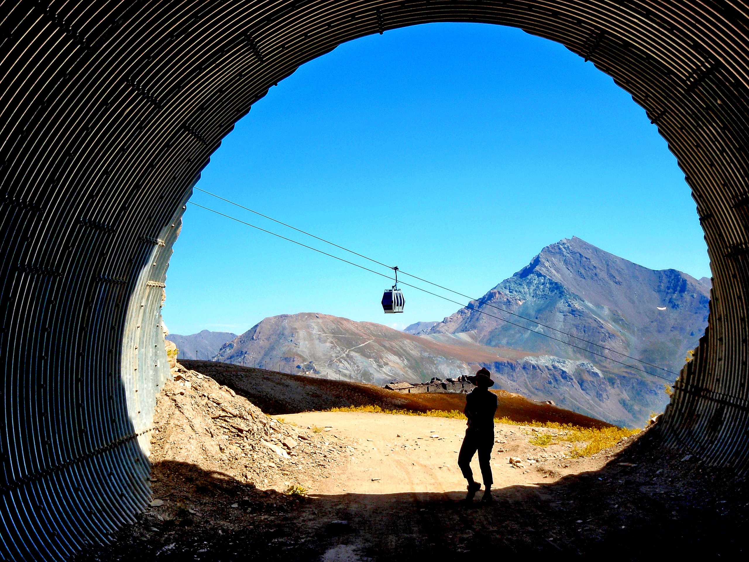 Sestriere, cabinovia al monte Fraiteve, ripresa da un punto di vista inconsueto